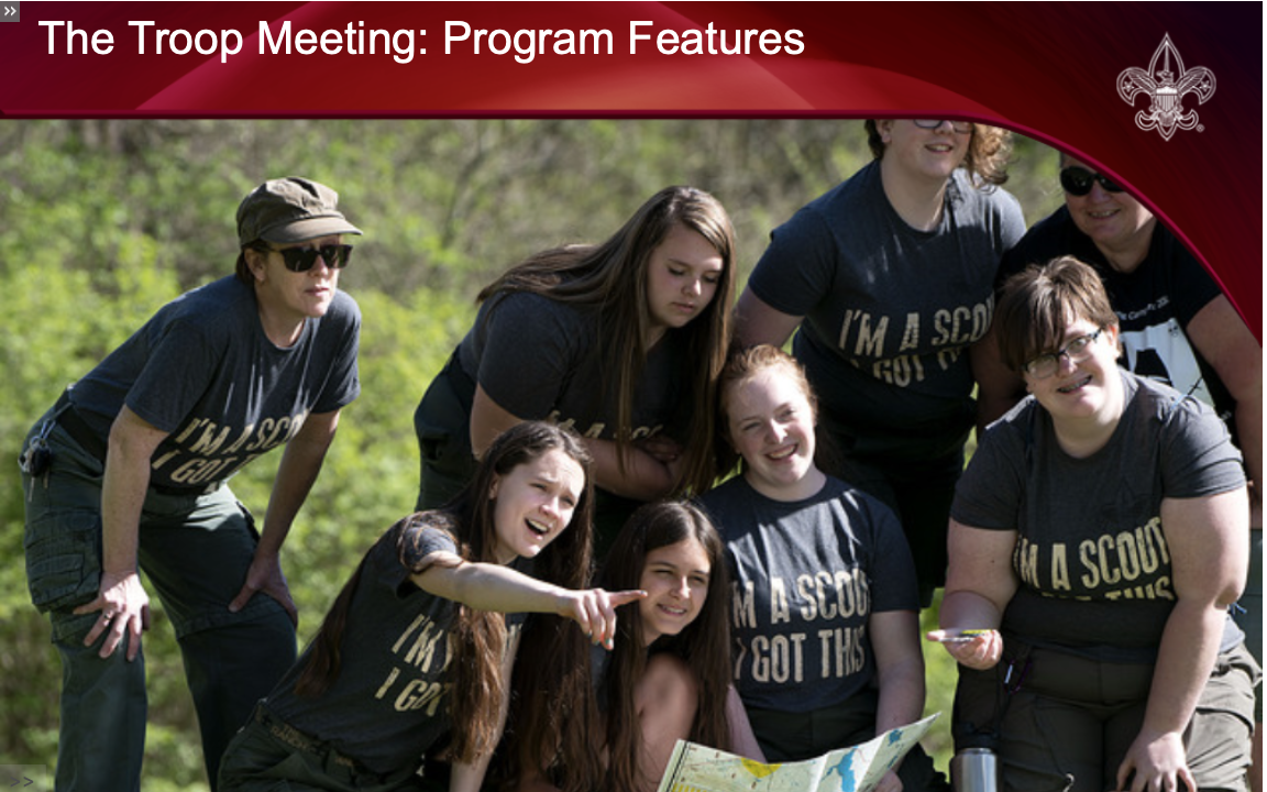 Next 14 THE TROOP MEETING: PROGRAM FEATURES “These are especially effective when they are planned, organized, and carried out by the Scouts themselves.” PREVIOUS NEXT
