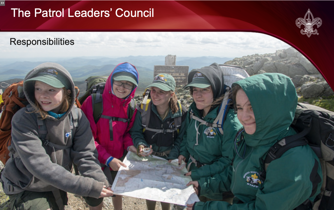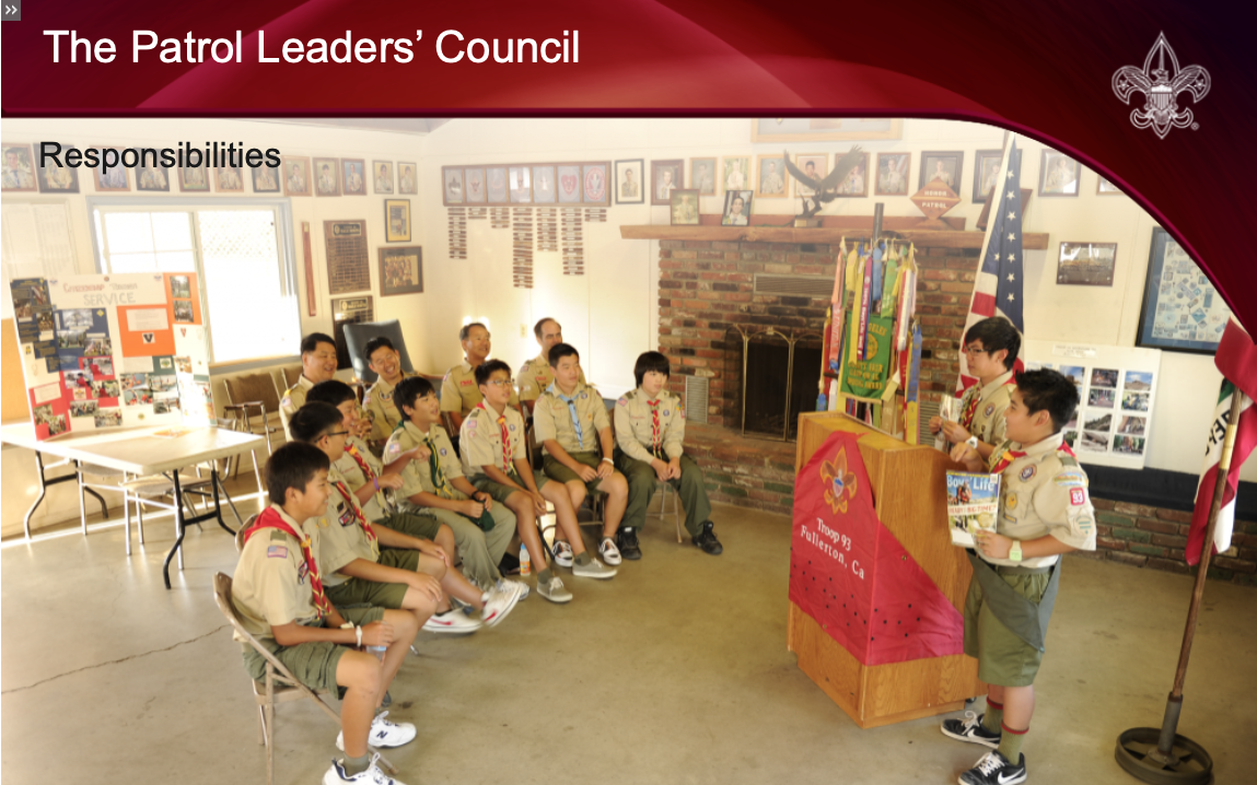 1 REPLACE with a photo of “Scouts serving in positions of responsibility.”1 Click above for larger view2 REPLACE with a photo that resembles a PLC meeting.2 Click above for larger image.3 REPLACE with a photo of a PLC.3 Click above for larger photo.4 REPLACE with members of a PLC meeting after the troop meeting.4 Click above for larger photo.5 REPLACE with a photo of a real PLC meeting conducted by SPL.5 Click above for larger photo.6 REPLACE with a photo congruent with the narrative, without CSP issues and with Scouts from same troop.6 Click above for higher resolution.7 REPLACE with a photo that has a PL with a troop position patch.7 Click above for larger view.8 REPLACE with a photo that better reflects the narrative.8 Click above for larger image.9 REPLACE with a photo of a real troop guide.9 Click above for larger view.10 REPLACE with a photo containing an SM at an actual PLC meeting.10 Click above for larger image.11 REPLACE this photo with an image that shows an SM with a position patch, present during the PLC meeting.11 Click above for larger image.12 REPLACE with a photo that illustrates the SM behind the scenes.12 Click above for larger image.13 REPLACE with a photo that corresponds with the theme of this PLC program.13 Click above for larger photo.14 REPLACE this photo with one that is in accordance with the theme.14 Click above for larger photo.15 REPLACE with a photo of an actual PLC.15 Click above for larger image.16 REPLACE with a photo that matches the PLC theme. (This one includes the Scouter with gold loops, a temporary patch on her left pocket, and the Scouts on an outing.)16 Click above for larger photo.17 REPLACE with a photo of a real PLC meeting.17 Click above for larger photo.18 REPLACE this photo with one that directly represents a PLC.18 Click above for larger photo.19 REPLACE with a photo that ties in with the narration.19 Click above for a larger photo.20 REPLACE with a photo that ties in with the narration.20 Click above for larger photo.21 Adults are chatting together while the Scouts look on? REPLACE with a photo that ties in with the narration.21 Click above for larger photo.22 REPLACE with a photo of an authentic PLC meeting. (The coloring project on the table doesn’t fit into a PLC meeting agenda.)22 Click above for larger image.23 REPLACE with a photo of the SPL opening the meeting with a real PLC.23 Click above for larger view.