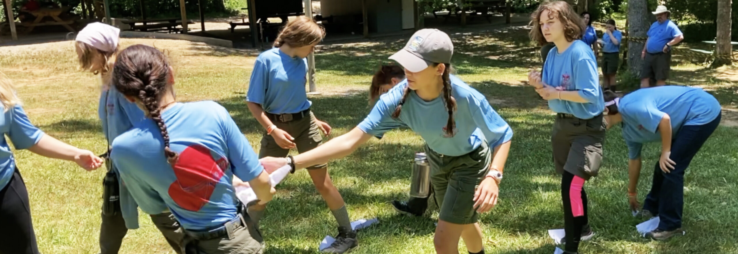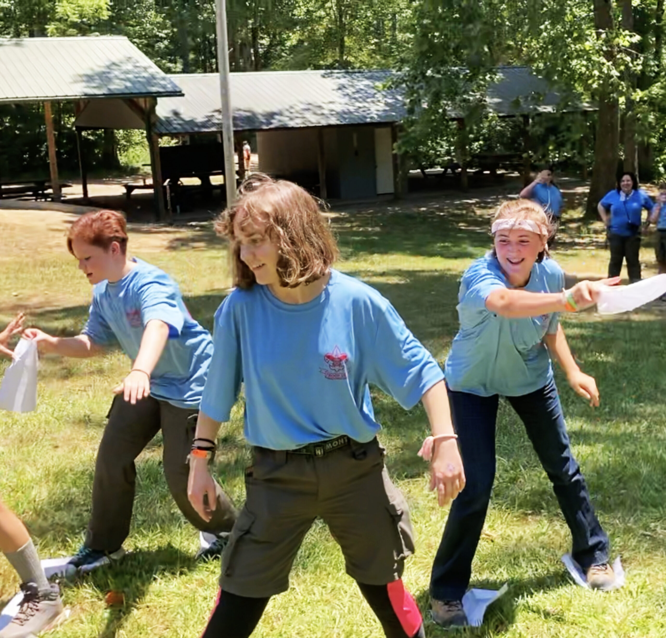 The remaining empty sheet is passed forward and the process is repeated. If a Scout steps off a sheet of paper, the entire patrol must move back and start over. The first team that crosses the finish line is the winner.